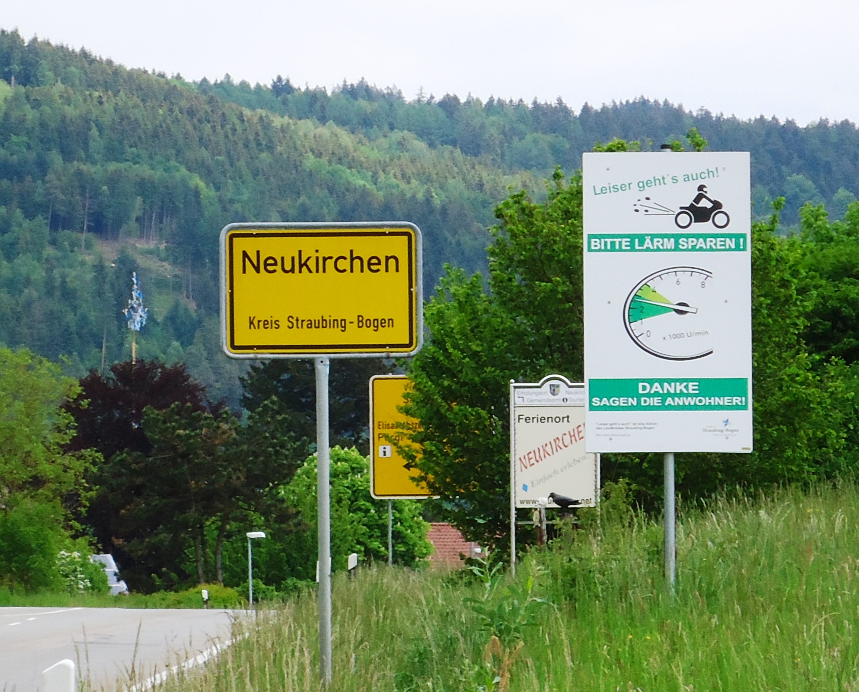 Hinweistafel gegen Lärmproduktion im Landkreis Straubing-Bogen.