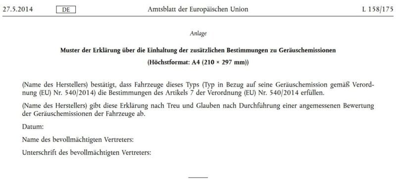 Bislang wurden diese zusätzlichen Geräuschmessungen den Herstellern im Sinne einer Selbstzertifizierung überlassen: Die Hersteller bestätigen selbst „nach Treu und Glauben“ auf einem DIN A 4 Formular, dass alle