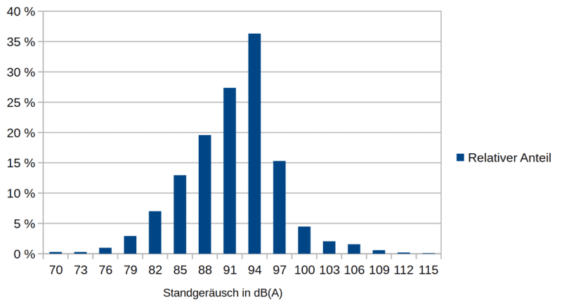 Menge zugelassener Motorräder (y-Achse) mit entsprechendem Nahfeldpegel (Standgeräusch) (x-Achse)